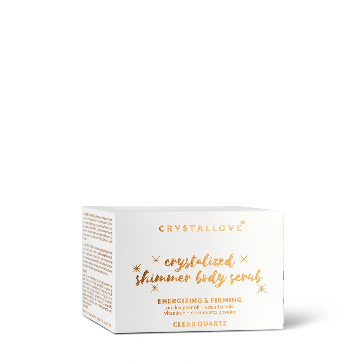 Energetyzujący, złuszczający i odświeżający peeling do ciała z dodatkiem pyłu z kryształu górskiego. Wzbogacony o naturalne i pięknie pachnące olejki takie jak bergamotka, trawa cytrynowa, olejki eteryczne oraz witaminy C i E. Pełen naturalnych antyoksydantów. Drobinki cukru usuwają martwe komórki naskórka, pobudzając skórę do regeneracji i przywracają jej jedwabistą gładkość oraz nawilżenie. Formuła oparta w 99,99% na składnikach pochodzenia naturalnego, które odżywiają skórę już w trakcie masażu.