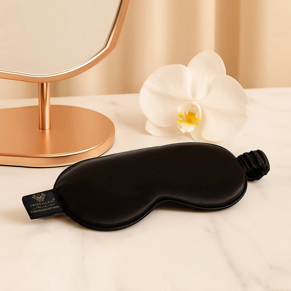 CRYSTALLOVE – Opaska na oczy z naturalnego jedwabiu – czarna
