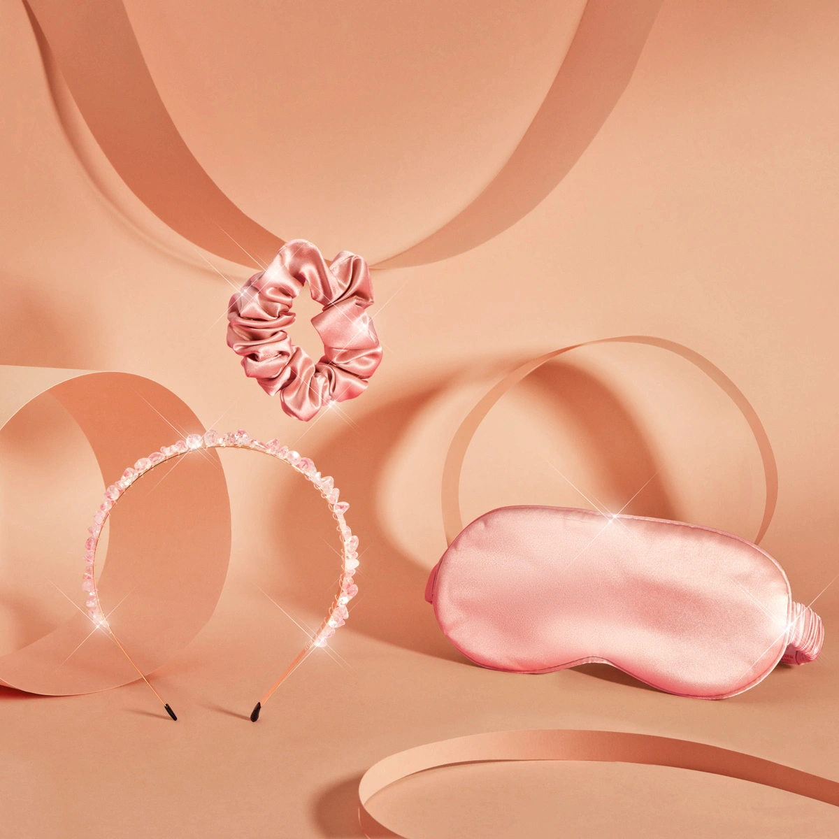 CRYSTALLOVE Rose silk set – opaska na oczy + opaska na włosy + gumka z jedwabiu
