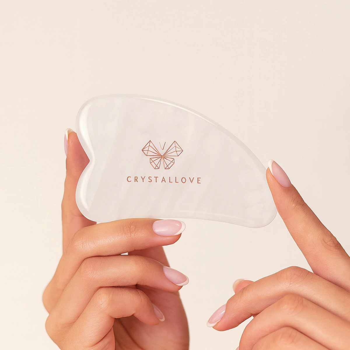 Stwórz swój domowy rytuał pielęgnacyjny z płytką do masażu twarzy gua sha wykonanej z naturalnego kryształu górskiego. Model o najwyższej klasie wykonania.